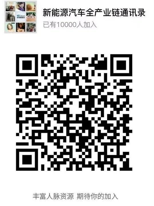 另外,新能源汽车全产业链通讯录欢迎您的加入,微信扫以下二维码,填入公司、职位、电话、邮箱等信息即可加入。